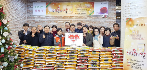 경기 남양주시 별내동 별내동안교회는 최근 지역내 행정복지센터에 사랑의 백미 3000kg(10kg, 300포)를 전달했다. 이날 전달된 백미는 지역내 장애인시설, 지역아동센터 등에 기부된다. 사진은 기부를 기념해 기념촬영을 하는 모습. (사진제공=남양주시청)