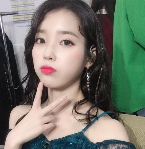 공개된 사진 속 아이유는 진녹색의 무대의상을 입고 무심하게 손가락으로 V를 그리며 카메라를 응시하고 있다. 특히 아이유의 발그레한 뺨과 입술이 인형 미모에 한층 더 생기를 불어 넣으며 보는 이들을 설레게한다.