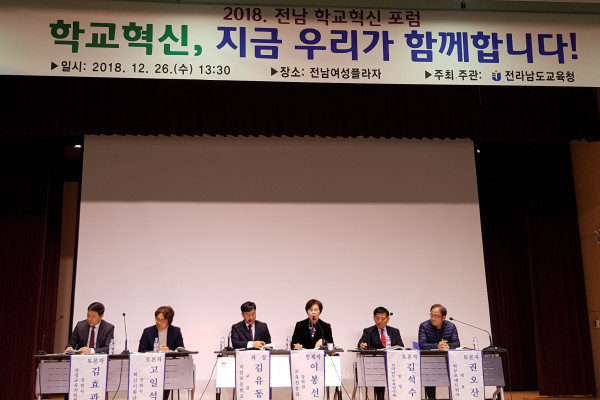 전남도교육청은 26일 오후 전남여성플라자 공연장에서 교육청 과장 및 팀장(장학관·사무관)과 교육지원청의 교육·행정지원과장, 업무담당자, 혁신학교지역리더과정 연수자 등 250여명이 참석한 가운데 ‘2018 전남학교혁신 포럼’을 개최했다. 사진은 이날 참여자들이 토론하는 모습. (사진제공=전남도교육청)