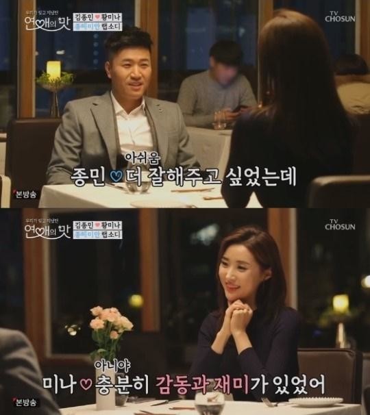20일 방송된 TV조선 예능 프로그램 '연애의 맛'에서는 연애 시작 후 자동차 영화관에서 데이트한 김종민 황미나 커플의 모습이 그려졌다.