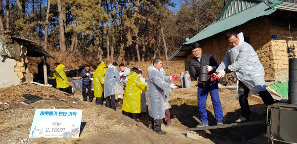 경기 여주시 북내면 주민자치위원회와 생활안전협의회는 지역내 홀몸노인 및 노인 부부 가정 8가구에 연탄 2100장을 배달하는 봉사활동을 실시했다. 이날 북내면 기관단체장들도 참가해 함께 연탄을 날랐다. 사진은 봉사자들이 연탄을 나르는 모습. (사진제공=여주시청)