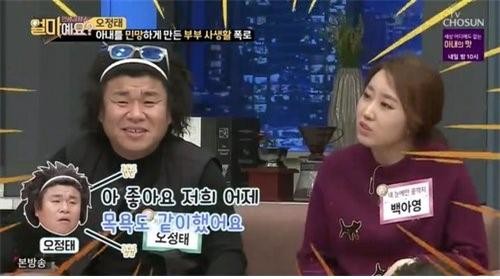 이에 오정태는 "그럼 다른 사람이랑 목욕하냐?"고 반박했고, 백아영은 "목욕하고 때 미는 얘기를 왜 하냐고 모르는 사람한테"라고 따져 웃음을 자아냈다.