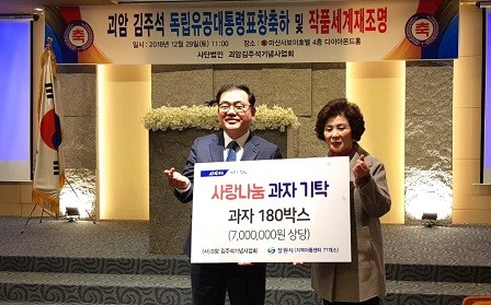 이번 행사는 괴암 김주석 선생이 지난 8월 15일 대통령표창을 추서 받은 것을 축하하고 선생의 작품을 통해 당시의 시대 상황을 이해하고 공감하는 미술세계를 재조명하는 기회를 마련하기 위해 열렸다. 김주석 기념사업회는 이날 지역의 어려운 아동들을 위해 사랑나눔 과자 180박스(700만원 상당)를 기탁했다.