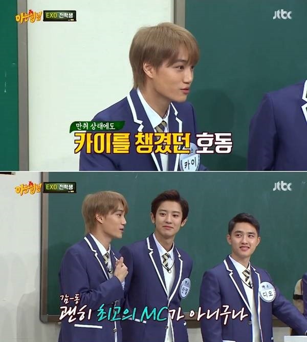이어 그는 "(강호동이) 술에 취해있는데도 나를 챙겨주고, 우리 어머니까지 챙겨주는 모습에 '괜히 최고의 MC가 아니다'라는 생각이 들었다"고 말했다. "왜 어머니와 압구정에 있었느냐"라는 서장훈의 물음에 카이는 "데이트했다"고 밝혀 훈훈함을 자아냈다.