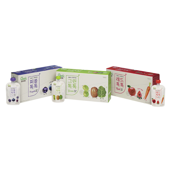 ‘자연이키운 퍼플 톡톡’은 마키베리, 블루베리 등 보라색 과일에 사과와 배를 더했으며, ‘자연이키운 그린 톡톡’은 케일, 브로콜리 등 녹색 채소에 청포도, 키위 등을 더해 만들었다. ‘자연이키운 레드 톡톡’은 당근과 레드비트에 체리, 딸기 등을 더해 만든 제품이다.