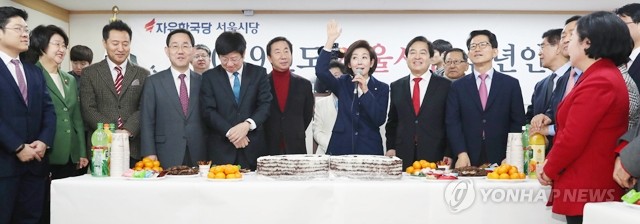 자유한국당 나경원 원내대표가 3일 오전 서울 여의도 서울시당에서 열린 서울시당 신년인사회에서 인사를 하고 있다.