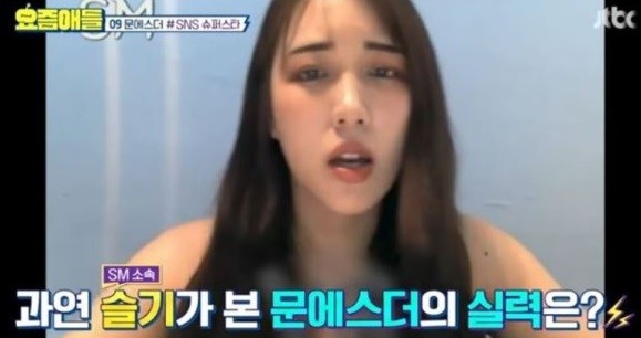 문에스더의 창법 모사에 SM엔터테인먼트 소속 레드벨벳 슬기는 "너무 정확했다"며 "SM은 깔끔하고 밴딩(끝음을 길게 처리하는 것)이 없다"고 설명했다.