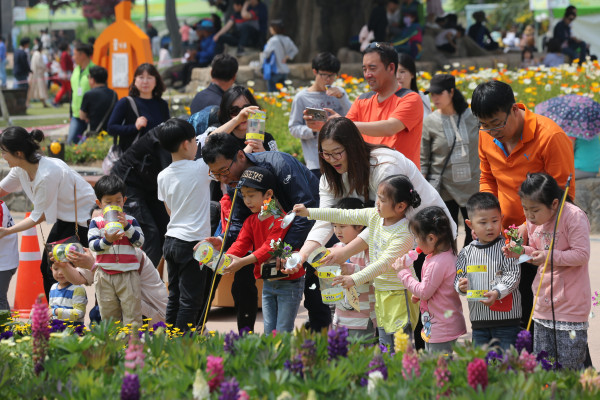 | ▲ 함평나비축제 방문객들이 나비날리기 체험을 하고 있는 모습. (사진제공=함평군청) | ||