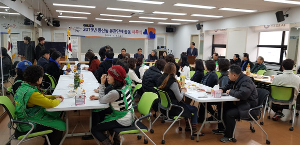 경기 하남시 풍산동 행정복지센터는 최근 새해를 맞아 ‘행복한끼 나눔봉사’ 시무식을 개최했다. 이날 새마을 부녀회와 지역사회보장협의체가 함께 준비한 반찬과 떡만둣국을 지역내 홀몸노인 등 30가구에 전달했다. 사진은 시무식이 진행되는 모습. (사진제공=하남시청)