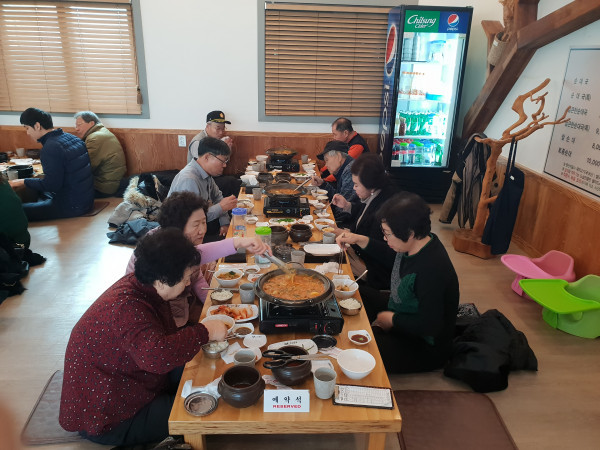 경기 동두천시 생연1동 행정복지센터는 지난 4일 새해를 맞이해 지역내 경로당 회장 7명을 초청해 '오찬 간담회'를 했다. 이날 간담회는 평소 각 경로당 운영 활성화를 위해 많은 노력을 한 회장단에 대한 격려와 함께 감사의 마음을 전하기 위해 마련됐다. 사진은 참여자들이 식사를 하는 모습. (사진제공=동두천시청)
