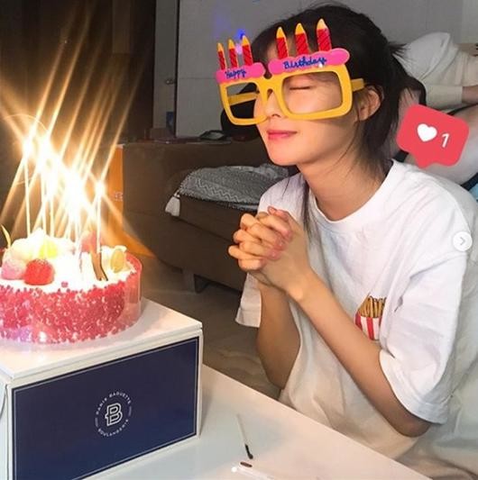 공개된 사진 속 이선빈은 케이크 앞에서 두 손을 모으고 기도하고 있는 모습이다. 특히 이선빈은 커다란 안경을 쓴 채로도 변함없는 미모를 드러내 눈길을 끈다.