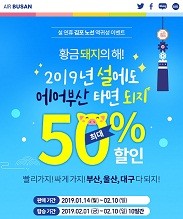 설 연휴 기간 최대 50%까지 할인을 실시하는 역귀성편 항공권은 오는 14일(월)부터 다음 달 10일(일)까지 에어부산 홈페이지와 모바일 앱에서 구매할 수 있다.