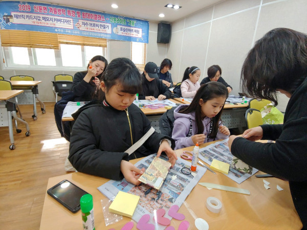 경기 이천시 신둔면 주민자치평생학습센터는 지난 5일 겨울방학을 맞이해 가족과 함께 나들이 하며 즐길 수 있는 방학특강 프로그램으로 ‘패브릭 카드지갑’ 만들기와 3M ‘메모지 커버’를 디자인해보는 체험을 진행했다. 사진은 참여자들이 패브릭 카드지갑을 만들어 보는 모습. (사진제공=이천시청)