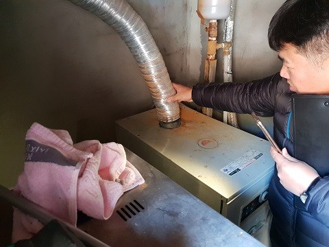 | ▲ 밀양펜션에서 보일러 연통 안전점검 | ||