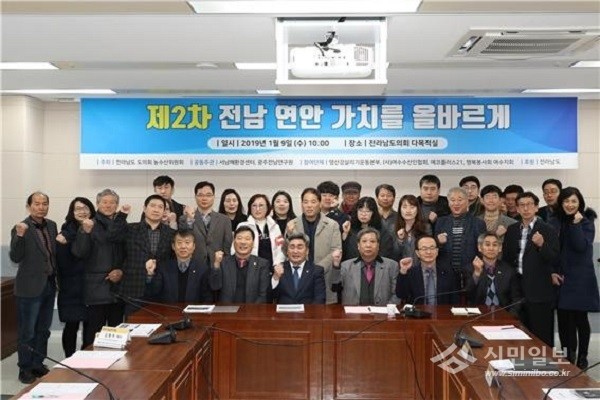 | ▲ 광주전남연구원과 서남해 환경센터가 공동 주관한"제2차 전남연안가치 올바르게 간담회"에 참석한 김성일 전남도 농수산위원회 위원장(사진 앞 줄 중앙) | ||