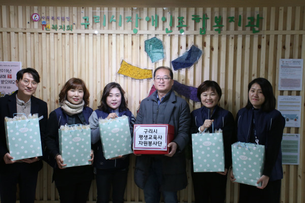 경기 구리시 평생교육사 자원봉사단은 최근 유채꽃에서 추출한 기름을 활용해 유채꽃 수제 비누 300개를 제조해 지역내 장애인복지관에 기증했다. 이 비누는 화학성분이 첨가되지 않고 천연재료로만 만들어졌다. 사진은 기념촬영을 하는 모습. (사진제공=구리시청)