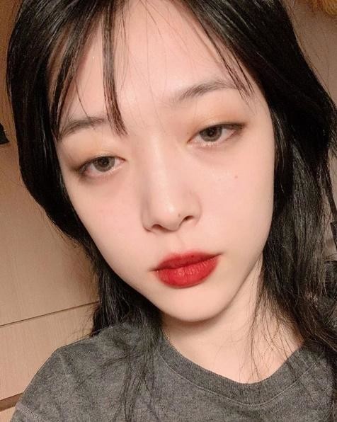 게재된 사진 속 설리는 무표정으로 카메라를 응시하고 있다. 설리는 눈을 게슴츠레하게 뜨고, 빨간 립 메이크업을 연출해 고혹적인 분위기를 자아냈다.