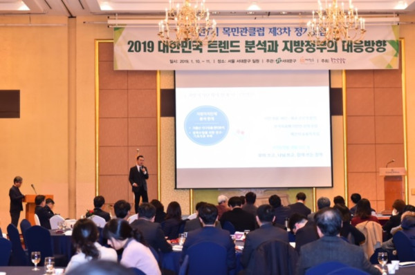 이항진 경기 여주시장이 최근 서울 서대문구에서 열린 ‘민선7기 목민관클럽 제3차 정기포럼’에 참석해 민선7기 기조와 사업방향을 발표했다. 포럼은 주민들의 요구에 부응하는 행정 방안 모색을 위해 마련됐다. 사진은 포럼이 진행되는 모습. (사진제공=여주시청)