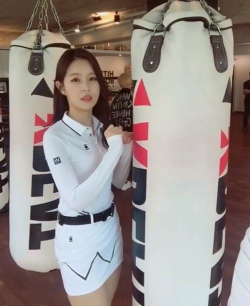 공개된 영상 속엔 골프웨어를 입은 조수애가 복싱장에서 샌드백을 주먹으로 치는 모습이 담겨있다.