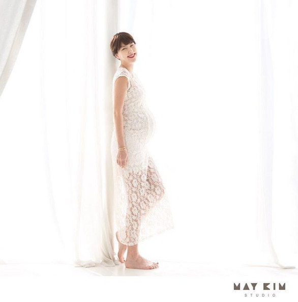 공개된 사진 속에는 시스루 드레스를 입은 이윤미의 만삭사진이 담겼다. 우아한 D라인을 뽐낸 이윤미는 설레는 듯 행복하게 웃고 있다. 만삭 임에도 군살 하나 없이 늘씬한 몸매가 돋보인다.