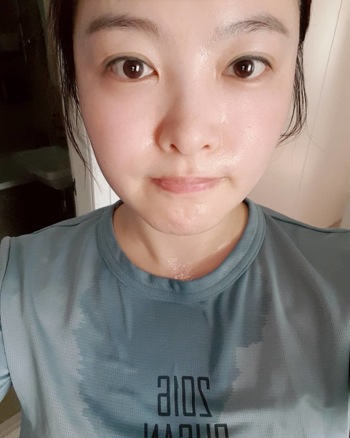 이와 함께 공개된 사진에서 심진화는 땀을 비오듯 흘리며 셀카를 찍고 있다. 한층 갸름해진 그의 턱선이 시선을 사로잡는다.