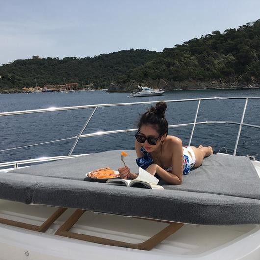 또한 바람이 부는 선상 위에서도 미모를 잃지 않는 완벽한 옆태를 과시했으며, 음식을 먹으면서 일광욕을 하는 여유로운 일상을 보여주기도 했다.