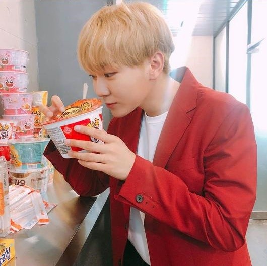 사진 속 승관은 컵라면을 들고 망설이는 표정을 짓고 있다. 이어 라면 용기에 코를 대고 냄새를 맡는 모습을 보여줬다. 라면이 먹고 싶은 건지 내려다보며 시무룩한 표정도 드러낸 그는 '와이파이'라는 곡을 개사한 해시태그로 재치력을 뽐냈다.