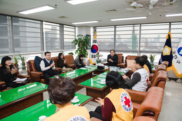 | ▲ 고양석 의장이 대한적십자사봉사회 광진구협의회 임원진과 이야기를 나누고 있다. (사진제공=광진구의회) | ||