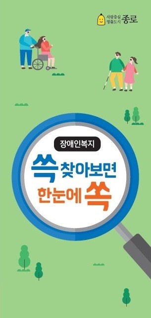기존의 리플릿은 정부와 복지기관에서 각각 배포하고 있어 복지서비스를 한눈에 찾아보기 힘들다는 주민들의 의견을 수렴해 종로구는 여러 곳에 나눠져 있는 장애인 복지서비스 내용을 정리해 한 장에 담았다.