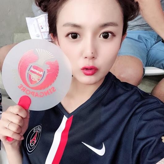 14일 강은비는 자신의 인스타그램을 통해 "psg 유니폼입고 아스날 응원하는 축알못"이라는 글과 함께 사진을 게재했다.