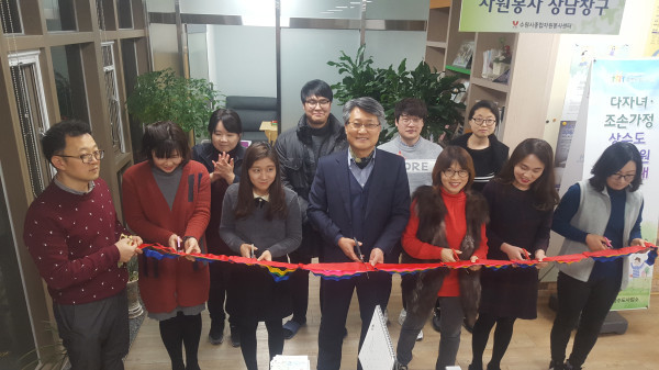 경기 수원시 권선구 권선1동은 직원들의 업무 능력 향상을 위한 직원 휴게실을 마련하고, 14일 개소식을 열었다. 사진은 권선1동 관계자들이 휴게실 개소 축하 테이프 커팅을 하고 있는 모습. (사진제공=수원시청)