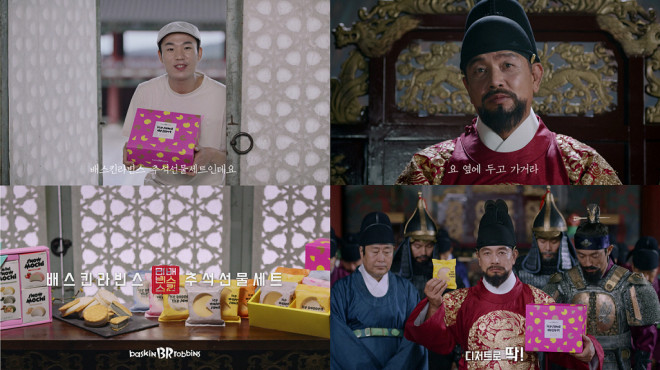 금상과 동상을 수상한 작품은 지난해 9월에 선보인 ‘추석선물세트 편’이다. 조선시대 왕 역할을 맡은 배우 김영철과 배스킨라빈스 배달원의 황당한 만남을 유쾌하게 담은 사극 콘셉트의 광고로 ‘서울영상광고제 2017’에 출품해 작품상 부문 동상으로 선정된 '배스킨라빈스31: 왕의 선물 편'의 후속작이다.