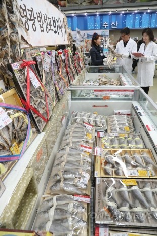 16일 서울 서초구 농협하나로마트 양재점에서 이수현 농협유통 대표이사가 설 제수용품 원산지 및 식품안전 특별점검을 하고 있다. 농협유통은 식품안전상황실을 운영하고, 전 직원을 식품안전 점검자로 지정하여 모든 먹거리에 대한 지속적인 점검을 한다.