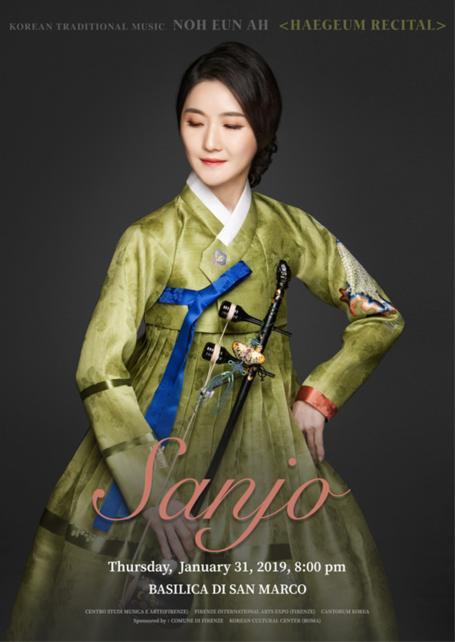 노은아의 섬세하고 단단한 완성도 높은 해금 소리와 상상을 초월하는 주법과 테크닉이 더해져 오랜 세월동안 불가능이라 여겼던 해금의 한계를 뛰어 넘는 폭 넓은 음악적 스펙트럼을 여지없이 보여주고 있는 음악들로 해금은 한국을 넘어 세계로 힘차게 비상하고 있다. 이번 연주회는 산마르코대성당의 세계무대에서 오롯한 한국의 전통음악으로 승부를 건다. 한국 전통 민속음악을 대표하는 ‘산조’를 주제로 해금산조의 양대 산맥이라 할 수 있는 <지영희류 해금산조>와 <한범수류 해금산조>, 가야금의 명인 강태홍이 자신의 산조가락에 직접 춤을 얹은 <산조춤>을 선보인다. 부채산조라 불리는 산조춤은 부채를 든 고고한 모습으로 고도의 절제된 춤으로 청아하면서도 화사한 느낌의 춤이다.