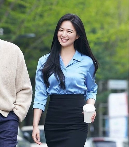 공개된 사진 속 이엘리야는 푸른 블라우스와 스커트의 오피스룩을 입고 특유의 반달눈 미소를 짓고 있다. 특히, 평범한 옷차림에도 드러나는 이엘리야의 명품 몸매가 시선을 압도한다.