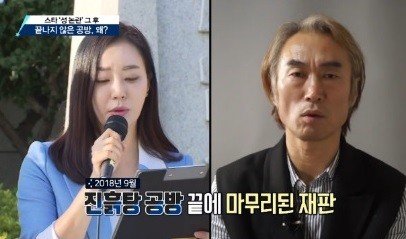 OBS '독특한 연예뉴스'가 성 논란으로 곤욕을 치른 스타들의 끝나지 않고 있는 공방을 짚어봤다. 조덕제와 반민정은 3년간의 긴 다툼 끝에 성추행 법정공방의 마침표를 찍었다.