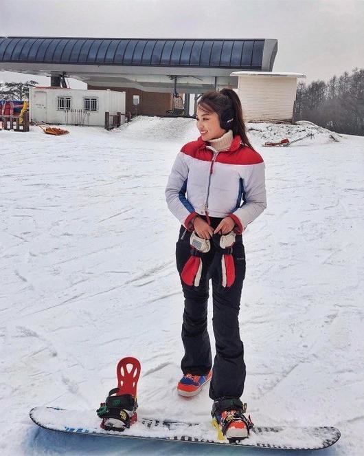 공개된 사진 속 김희정은 하얀 설원에 서서 보드 탈 준비를 마친 상태. 김희정은 조그마한 얼굴에 꽉찬 이목구비를 자랑해 시선을 끌었다.