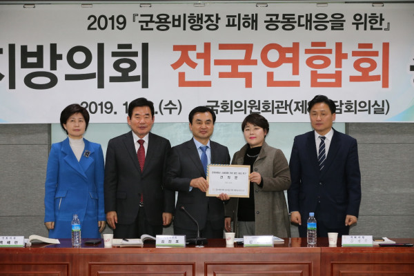 의원들은 건의문을 통해 “주민들의 욕구에 부응하는 현실성 있는 소음대책 기준을 정하여 적절한 보상과 지원 대책이 마련될 수 있도록 하루 속히 군용비행장 소음피해 관련 법안 제정을 강력하게 촉구한다.”는 내용을 전달했다.