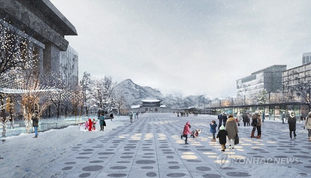서울시가 21일 공개한 광화문광장 재구조화 국제설계공모전 당선작 ‘Deep Surface’(딥 서피스) 투시도.