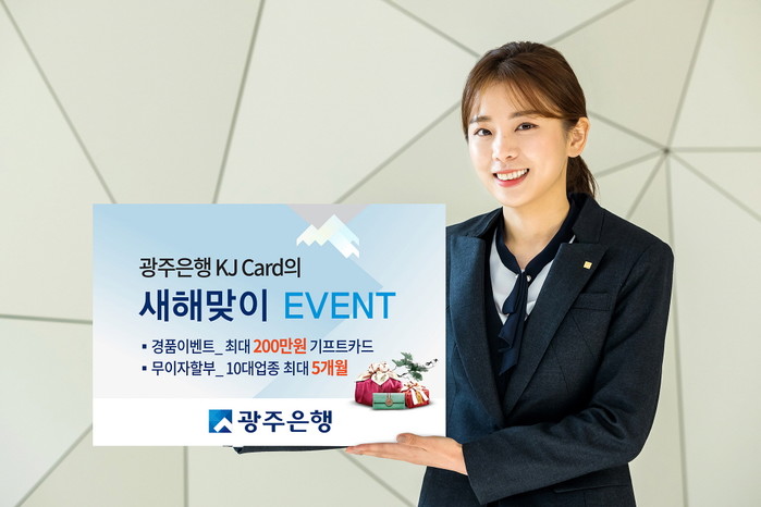 [시민일보=고수현 기자]광주은행(은행장 송종욱)은 KJ카드 개인고객을 대상으로 오는 3월31일까지 ‘새해맞이 이벤트’를 실시한다고 밝혔다.