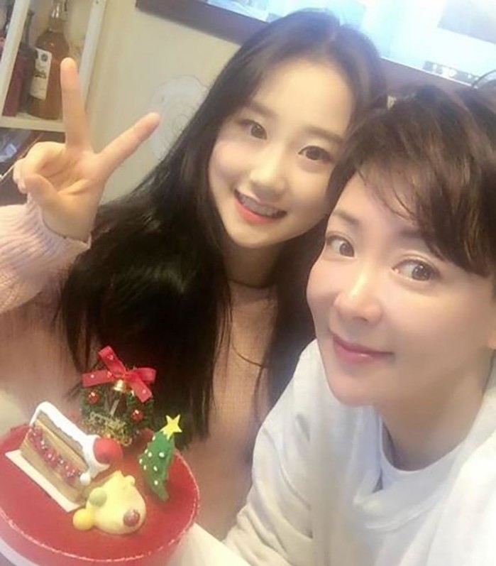 공개된 사진 속 윤서진은 이상아와 함께 셀카를 찍고 있는 모습이다.