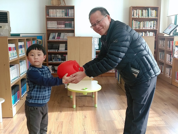 서울 성동구 성수2가1동 성덕어린이집은 최근 바자회 판매수익금 55만원을 ‘2019년 희망온돌 따뜻한 겨울나기 모금’에 기부했다. 이날 기부된 성금은 지역내 어려운 이웃을 위해 사용될 예정이다. 사진은 어린이집 아동이 성금을 전달하는 모습. (사진제공=성동구청)
