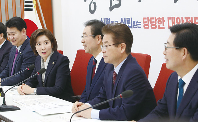 23일 오후 자유한국당 나경원 원내대표(왼쪽 두번째)가 국회에서 대한민국시도지사협의회 회장인 박원순 서울시장(왼쪽 세번째부터)과 이철우 경북지사, 양승조 충남지사와 자치·지방분권 관련 간담회를 하고 있다. /연합뉴스