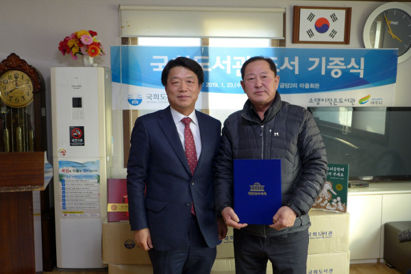경기 여주시 가남읍 금당2리는 최근 마을회관에서 국회도서관 관장 등이 참여한 가운데 국회도서관 도서기증식을 개최했다. 이에 따라 소댕이작은도서관은 국회도서관으로부터 도서 500권을 기증받게 됐다. 사진은 기념촬영을 하는 모습. (사진제공=여주시청)
