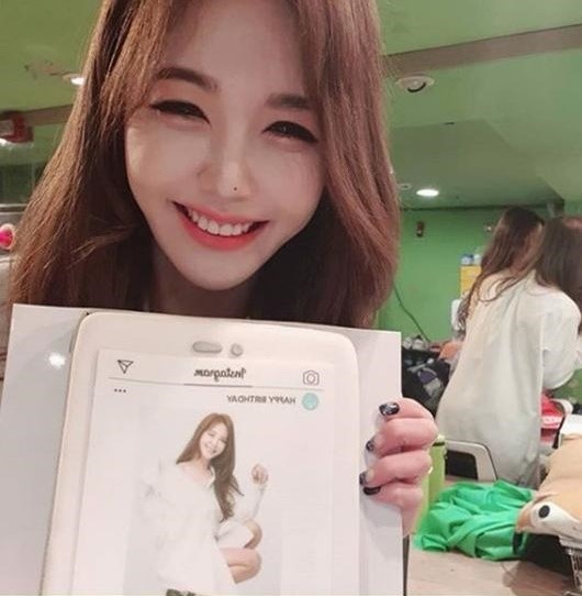 게재된 사진 속 강예빈은 핸드폰 모양 케이크를 들고 밝게 웃고 있다. 강예빈은 흰 피부에 뚜렷한 이목구비를 자랑해 여신 미모를 뽐냈다.