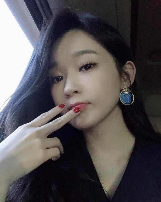 22일 오후 가수 강민경은 자신의 인스타그램에 "V"라는 짧은 글과 함께 셀카 한 장을 게재했다.