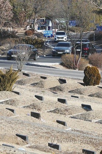 설 연휴가 일주일 남은 27일 오전 경기도 파주시 용미리 추모공원에서 성묘를 나선 차량들이 줄지어 이동하고 있다.