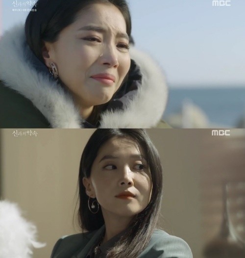 26일 방송된 MBC 토요드라마 '신과의 약속'에서는 아들 김준서(남기원 분)와 천지 그룹 내에서 본인의 입지를 지키기 위해 서지영(한채영 분)과 송민호(이천희 분)에게서 송현우(왕석현 분)의 파양 신청서를 얻어내는 우나경(오윤아 분)의 이야기가 그려졌다.