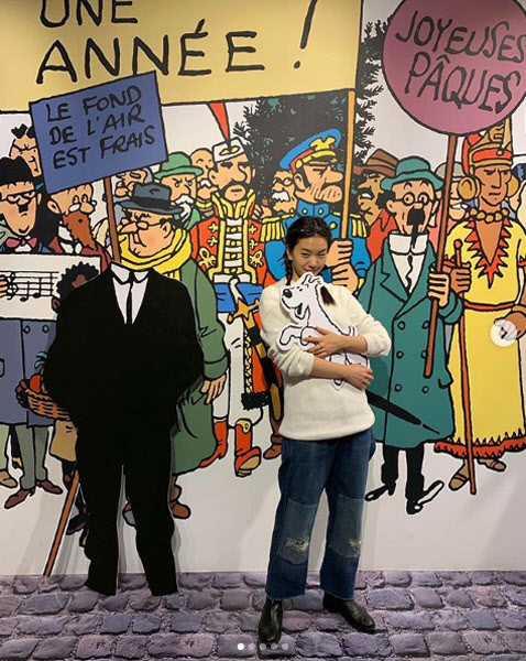 공개된 사진에는 이설이 강아지 판넬을 들고 포즈를 취하는 모습이 담겼다.