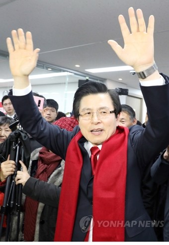 황교안 전 국무총리가 29일 오전 서울 영등포구 자유한국당 중앙당사에서 전당대회 당 대표 출마를 선언 후 지지자들에게 인사하고 있다.